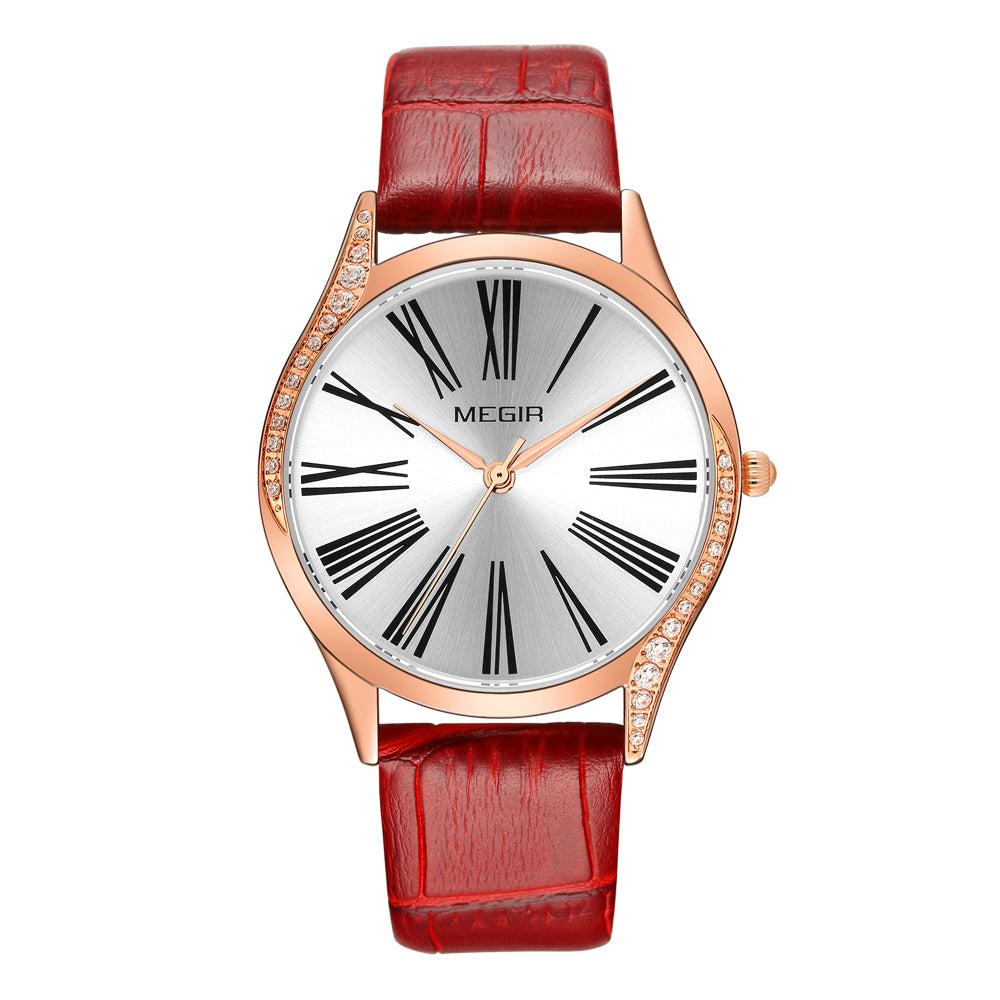 MEGIR Brand Fashion Leather Woman Bracelet Watches Ladies Quartz Wristwatch Rhinestone Waterproof Casual Wrist Watch Clock