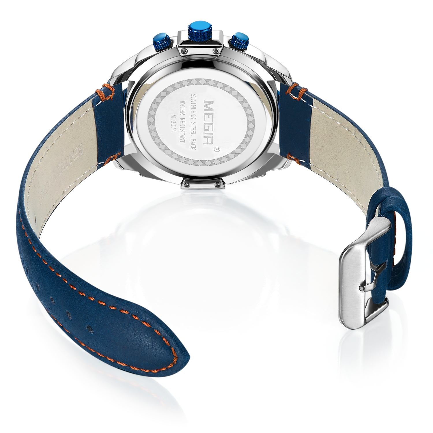 MEGIR Chronograph Men Watch Relogio Masculino Leather Strap Business Quartz Watch Clock Waterproof Date Army Military Wristwatch