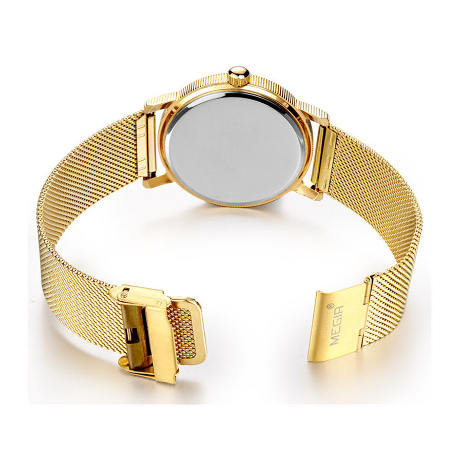 MEGIR Luxury Business Watches for Men Gold Steel Mesh Strap Men Quartz Watches Waterproof Wrist Watch Clock Reloj Hombre 2032